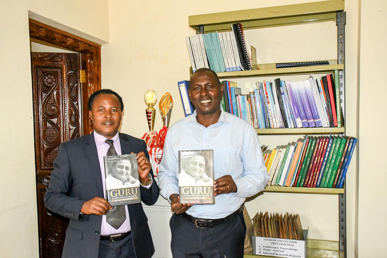 In a recent development aimed at enriching the academic resources and inspiring students, Dr. Kiboro, the Dean of the Faculty of Humanities and Social Sciences (FHSS), donated several copies of Dr. Narendra Raval’s best-selling book, “Guru: A Long Walk to Success,” to the University Library. These books were a generous gift from Dr. Raval himself, following a fruitful discussion on learning and student welfare.