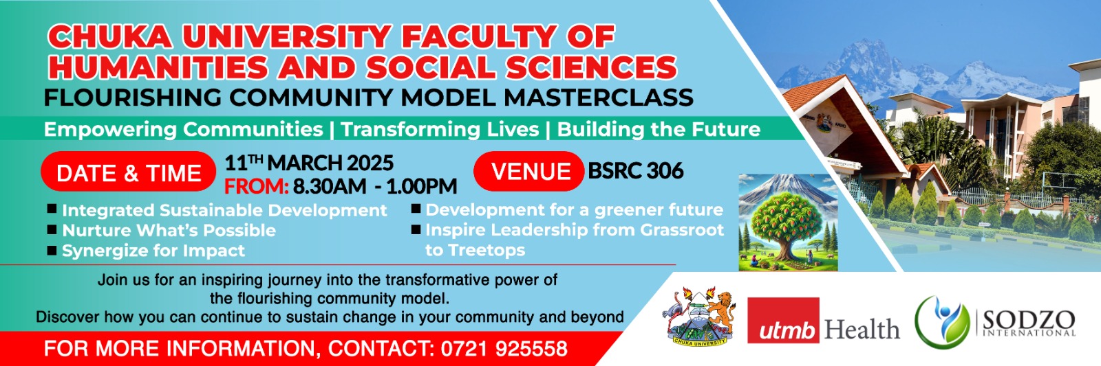 March 11, 2025 @ 8:00 am - 1:00 pm Flourishing Community Model Masterclass Symposium Chuka University